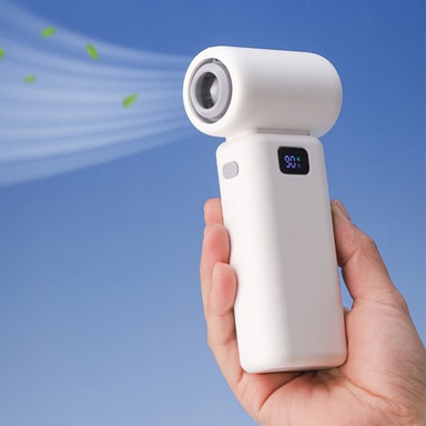 • Handhållen fläkt: Portabel kylning med LED-display Vit