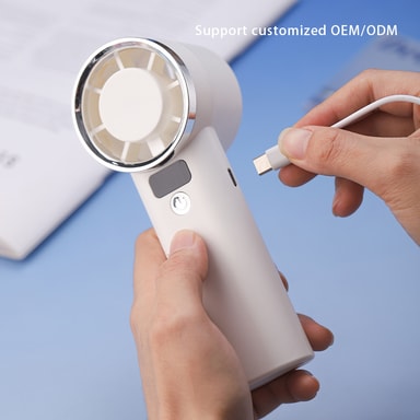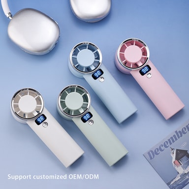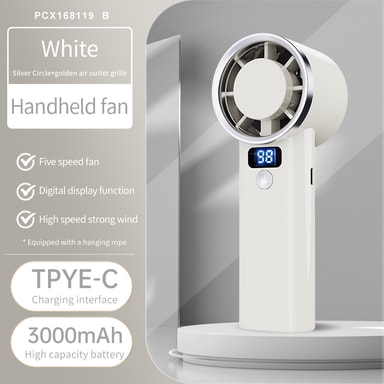 Smart & Portabel Design: Denna handhållna fläkt har en smart LED-display som visar aktuell fläkthastighet och batterinivå, vilket ger dig full kontroll och medvetenhet. Dess kompakta och lätta design gör den enkel att bära i väskan eller fickan, perfekt för användning på språng. Den medföljande basen gör att du kan använda den som en skrivbordsfläkt, vilket ger mångsidiga kylningsalternativ var du än är. Njut av bekvämligheten med justerbara vindhastigheter och en tyst drift.