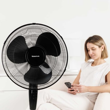 Stativfläkt från Taurus med justerbar höjd och 3 hastigheter för optimal kylning.