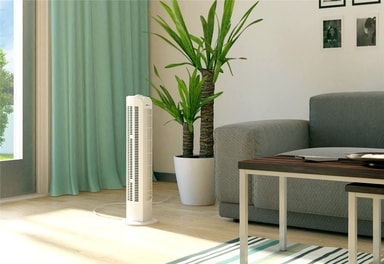 Valfri 75°-oscillation på alla effektnivåer ger jämnt fördelad ventilation och kylning.