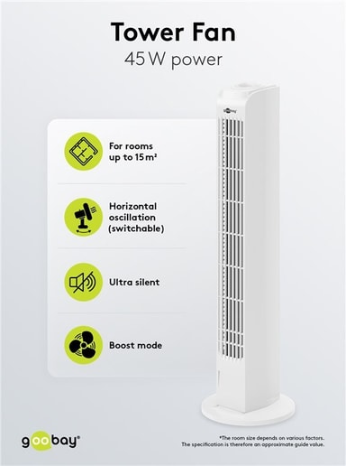 Golvfläkt med 3 effektnivåer: Lätt, stark och Turbo för optimalt justerbar luftkylning i rum på upp till 15 m².