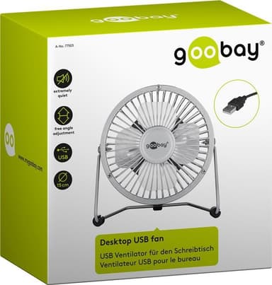 Bordfläkten förses med ström via USB-A, t.ex. via USB-utgången på enheter som en dator eller en bärbar dator.