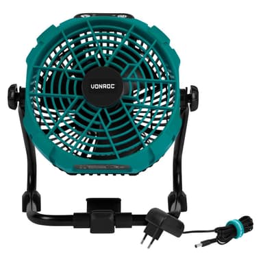 Svalka dig var du än är! VONROC 20V batteridriven fläkt med hybridfunktion ger dig flexibel användning – kör den på batteri eller direkt via nätström. Med 3 hastigheter, 360° justerbart luftflöde och upp till 7 timmars drifttid med 4.0Ah batteri får du en pålitlig fläkt för både inne- och utomhusbruk.