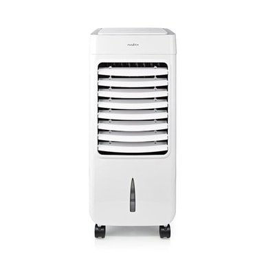Portabel luftkylare Om du vill ha starkare och mer effektiv kalluft än vad en vanlig fläkt kan åstadkomma och inte har något lämpligt fönster eller kan borra hål för utloppsslangen till ett luftkonditioneringssystem. Den här luftkylaren från Nedis® är den perfekta lösningen. Luftkylaren fungerar på följande sätt: den drar in torr, varm luft som leds genom en fuktad dyna. Dynan absorberar värme, fukten i dynan avdunstar och kyler luften ett par grader så att du kan njuta av en uppfriskande, sval bris. Tänk dig att du tillbringar en varm sommardag vid vattnet: även om temperaturen är hög, känns det behagligt svalt. Den fuktiga luften cirkuleras tillbaka in i rummet, så du slipper den torra luft som luftkonditionering ger. Jonisatorfunktionen renar luften mer effektivt. Negativa joner dras till damm och allergener och får dem att sjunka ned till golvet. Inkluderar två kylklampar som ger ytterligare svalka och en fjärrkontroll som gör att du kan ändra inställningarna utan behöva att resa dig upp. - Automatisk luftcirkulation ger jämn spridning av den svala luften i hela rummet - Två kylklampar som ger ytterligare svalka ingår - Ingen utloppsslang, vilket ger maximal flexibilitet, och den kräver varken borrade hål eller ett tillgängligt fönster - Producerar fuktig luft, ingen torr luft som irriterar ögon och hals - Lägre energiförbrukning än de flesta luftkonditioneringssystem - Justerbar hastighet och möjlighet att enbart använda fläktfunktionen - Relativt lätt, jämfört med luftkonditioneringssystem, med stabila svängbara hjul - enkel att flytta runt - Timerfunktion stänger av luftkylaren automatiskt efter en förinställd tid - Fjärrkontroll som gör den maximalt bekväm att använda - Jonisatorfunktion för extra ren luft Obs! Luftkylaren är inte ett luftkonditioneringssystem, den har inte aktiv kylning av luften som ett luftkonditioneringssystem, men är effektivare än en vanlig fläkt