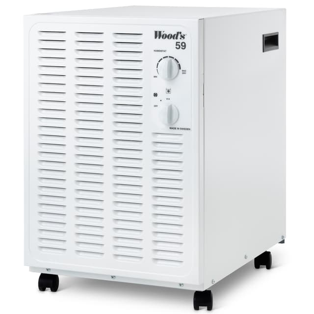 SW59FW har mycket god avfuktningskapacitet ända ner till +2°C och upp till +35°C. Wood’s SW59FW är speciellt utvecklad för att effektivt avfukta stora utrymmen. Den är optimal för källare, torkrum eller gemensamma tvättstugor.