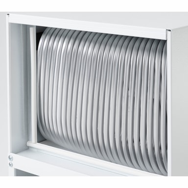 Avfuktaren har slanganslutning för direktavledning till avloppet, men även en rymlig vattenbehållare på 11,4 liter. Om vattenbehållaren blir full stänger maskinen av sig automatiskt. Den är försedd med robusta hjul vilket gör den lätt att flytta.