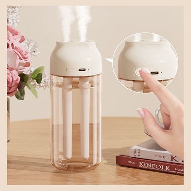Portabel USB-driven bekvämlighet: Ta din komfort var som helst med vår portabla USB-drivna luftfuktare. Dess kompakta design och USB-anslutning gör den idealisk för resor, kontorsbruk eller placering på ditt nattduksbord. Anslut den helt enkelt till valfri USB-port – bärbar dator, powerbank eller USB-adapter – och njut av omedelbar befuktning. Den lätta konstruktionen säkerställer enkel portabilitet, medan den effektiva strömförbrukningen gör den till ett miljövänligt val. Håll dig fräsch och bekväm vart du än går med denna mångsidiga och bekväma luftfuktare. Det är den perfekta lösningen för torr luft i hotellrum, bilar eller små arbetsytor.