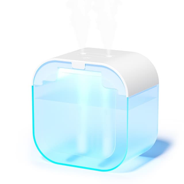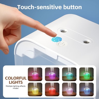 Dubbel Spray Effekt: Njut av förbättrad luftfuktning med de dubbla spraymunstyckena, som levererar en högre dimma för snabbare och effektivare fuktspridning. Denna USB-drivna dubbla sprayluftfuktare höjer snabbt luftfuktigheten i ditt rum och lindrar torr hud, hosta och bihåleinflammation. Den dubbla sprayfunktionen säkerställer att fukten sprids jämnt i hela utrymmet, vilket skapar en bekvämare och hälsosammare miljö. Perfekt för större rum eller områden med låg luftfuktighet, ger denna funktion en betydande prestandaökning, vilket gör det till ett utmärkt val för dem som söker snabb och effektiv luftfuktning. Den dubbla sprayen är kompatibel med eteriska oljor för aromaterapi.