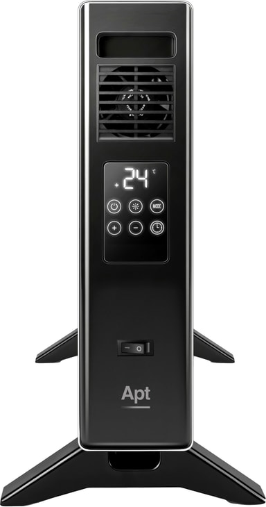 Apt Convector digitalt konvektorelement 74406 är en kompakt fristående enhet med 1000W/2000W-lägen, justerbar temperatur (5°C–45°C), turbofläkt, LED-pekpanel, timer, fjärrkontroll, barnlås och säkerhetsfunktioner som överhettnings- och tippskydd.Läs mer om produkten
