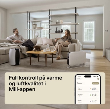 Håll ditt hem uppvärmt med 1500W Mill Gentle Air element OIL1500WIFI3. Den är perfekt för rum upp till 22 m², värmer effektivt utan att torka luften. Använd Mill-appen för automatiska temperaturjusteringar baserat på användning.Läs mer om produkten