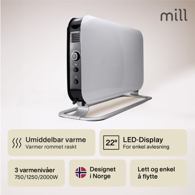 Golvelement från Mill i en enkel, stilfull design med överhettningsskydd och elektronisk termostat.Läs mer om produkten