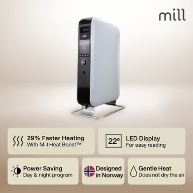 Oljefyllt golvstående element från Mill uppvärmning med design som passar in i alla hem.Läs mer om produkten