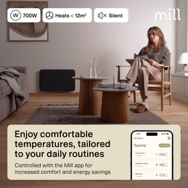 • 'Mill Invisible Smart Wi-Fi Gen4 panelvärmeelement PA700WIFI4BLACK'