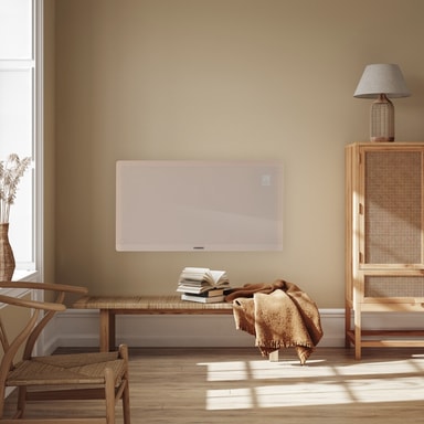 Den här elvärmaren är lika snygg som den är effektiv – den härdade beige glaspanelen med integrerad LED-display ger ett elegant och modernt utseende som smälter in i alla hem. Den varma, neutrala tonen gör den enkel att kombinera med olika inredningsstilar.