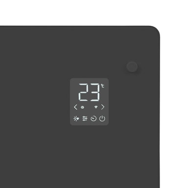 Den här elvärmaren är lika snygg som den är effektiv – den härdade grå glaspanelen med integrerad LED-display ger ett elegant och modernt utseende som passar in i alla hem.