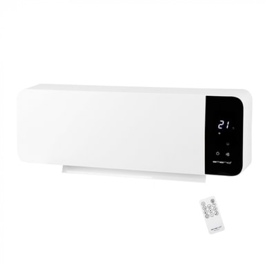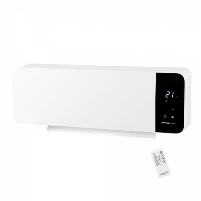 Denna väggmonterade värmefläkt från Emerio sprider snabbt och effektivt värme i ett kyligt utrymme. Termostat, värmeflöde och rörelse justeras enkelt med fjärrkontrollen. Värmefläkten känner dessutom av om fönster är öppna och stängs av om så är fallet. Med timern kan du ställa in värmfläkten för att få ett uppvärmt utrymme i förväg. Monteras enkelt högt upp på väggen för optimal rumsuppvärmning.