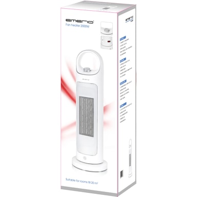 Fläkten är elegant vit och utrustad med keramiska värmeelement för effektivaste och skönaste värmen.