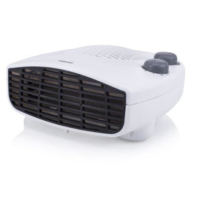 Denna liggande värmare har en justerbar termostat så temperaturen kan ställas in på önskad temperatur . Aggregatet har en fläkt som blåser värme in i rummet som skall värmas.