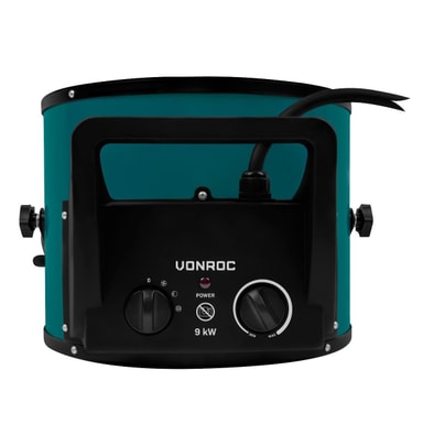 Inga fler frusna fingertoppar… den här kraftfulla keramiska värmefläkten från VONROC tar hand om det! Den här enheten använder trefas 400V ström och det är av goda skäl! Med en effekt på 9000W ser denna värmekanon till att din verkstad, lager eller garage är varmt på nolltid. Det keramiska elementet värms upp mycket snabbt och den kraftfulla fläkten driver upp till 1180m 3 varmluft per timme!