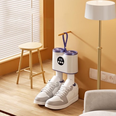 Mångsidig skokompatibilitet: Vår snabbtorkande skotork är utformad för att rymma ett brett utbud av skotyper och storlekar. Den utdragbara slangen säkerställer kompatibilitet med olika skor, från sneakers och stövlar till finskor och tofflor. Denna mångsidiga design gör den lämplig för hela familjen och säkerställer att alla kan njuta av varma, torra skor. Den justerbara slangen möjliggör riktad torkning och når djupt in i tåboxen och hälen på skon för grundlig fuktborttagning. Oavsett om du har ömtåliga läderskor eller kraftiga arbetsstövlar, ger denna skotork en säker och effektiv torkningslösning för alla dina skobehov. Det är det perfekta tillskottet till alla hem och ger komfort och bekvämlighet för hela familjen.