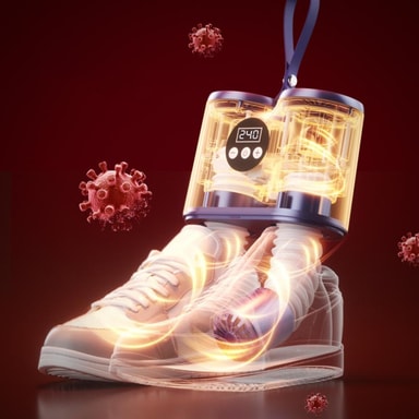 Snabb och effektiv torkning: Upplev kraften i snabb skotorkning med vår snabbtorkande skotork. Denna innovativa enhet värms upp på bara 5 sekunder och når cirka 55°C på 1 minut, vilket säkerställer att dina skor torkas snabbt och effektivt. Det kraftfulla luftflödet, som genereras av cyklonens dubbla fläktbladsdesign, accelererar torkningsprocessen, vilket gör den perfekt för dem som behöver sina skor redo snabbt. Idealisk för idrottare, friluftsentusiaster eller alla som hamnar i oväntat regn, denna skotork eliminerar fukt och håller dina skor fräscha och redo att bäras. Den dubbla kärnluftkanalen, inspirerad av flygteknik, tredubblar torkhastigheten för våta skor och ger oöverträffad prestanda.