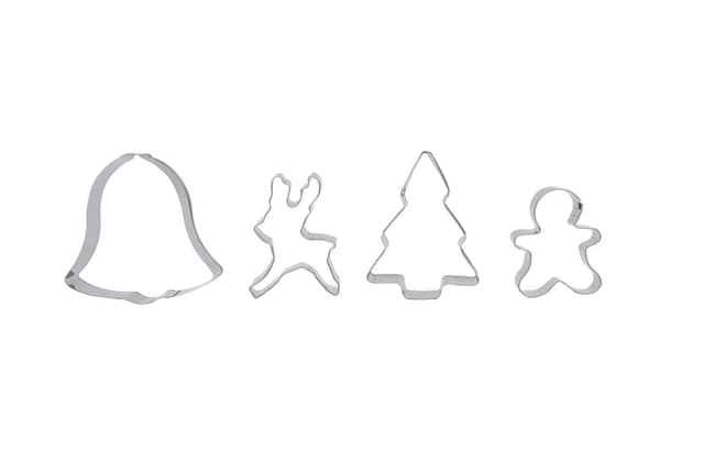 Kakformarna med julmotiv kommer i 4 olika former. De är tillverkade av rostfritt stål av livsmedelskvalitet, och perfekta för att stansa ut kakor och andra livsmedel till roliga former.