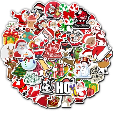 50 stycken klistermärken i olika julmönster, nästan icke-repetitiva. Dessa klistermärken är lämpliga för att dekorera de flesta föremål, du kan fästa dem på den plats du vill, iögonfallande och stilfulla.