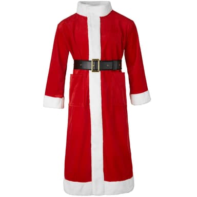 Kläderna gör människan. Och den klassiska tomterocken gör jultomten. Med de traditionella färgerna i rött och vitt känner varje barn igen den sympatiska julklappsleverantören från Nordpolen. Den långa rocken stängs med kardborrfästen på insidan. Två stora fickor på framstyckets höger- och vänstersida fungerar som ett praktiskt förvaringsutrymme. Det breda, svarta bältet i imiterat läder med guldglänsande spänne med 7 hål för storleksjustering. Så ingenting står i vägen för tomtens klassiska mage, Material: 100 % polyester.