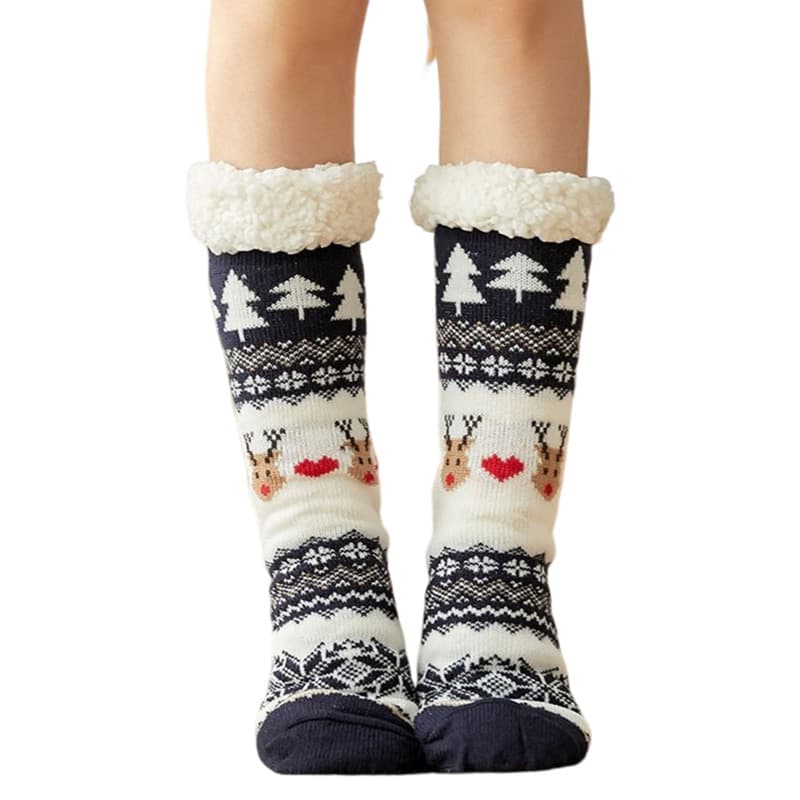 Varma, gosiga strumpor med fleecefoder och i härlig vintrig design. Perfekta till skidsemestern eller julmyset och som inneskor på vintern.