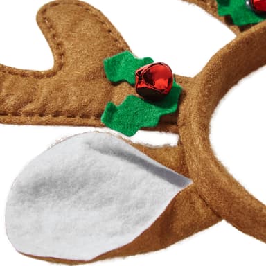 Ta på dig det ljusbruna renhornet och rida tillsamman med tomten och hans släde ut i natten! De två bjällrorna på hornets nedre del ger ifrån sig det typiska ljudet och är prydda med små julgranar. Två fluffiga öron gör accessoaren ännu gulligare. Självaste diademet har ett mjukt textilöverdrag och garanterar hög bärkomfort. Material: polystyren, polyester, stål.