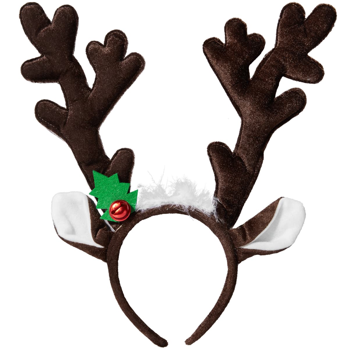 När det mörkbruna renhornet kommer fram, är det snart jul! Bjällran på hornets nedre del ger ifrån sig det typiska ljudet och är prydd med små julgranar. Med hjälp av tråden inuti kan hornet böjas i olika former. Små fjädrar och fluffiga öron gör accessoaren ännu gulligare. Självaste diademet har ett mjukt textilöverdrag och garanterar hög bärkomfort. Material: polystyren, polyester, kalkonfjädrar, stål.