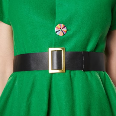 Damdräkten Flitig julälva består av en klänning, en mössa, ett bälte och knästrumpor. Den korta, gröna klänningen av fleecetyg har kort ärm och en figurbetonad resår i midjehöjd.Läs mer om produkten