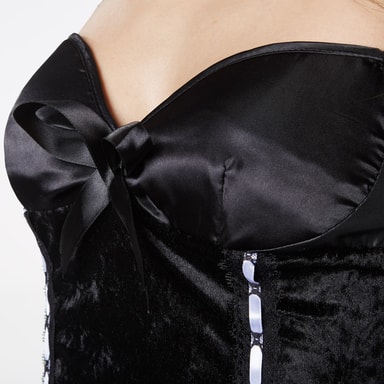 Damdräkten Het ängel består av en ärmlös, kort klänning med tunna axelband. Snittet är mycket figurbetonat, med en kort, silverfärgad prickig ytterkjol. Två underkjolar är av satin, den tredje av tyll med rysch. De formade kuporna på ovandelen pryds av en rosett. Två dekorkanter i svart och silver löper under bröstet till kjolen. Resår i ryggen håller dräkten på plats. På ryggen finns en dragkedja, material: 100 % polyester.