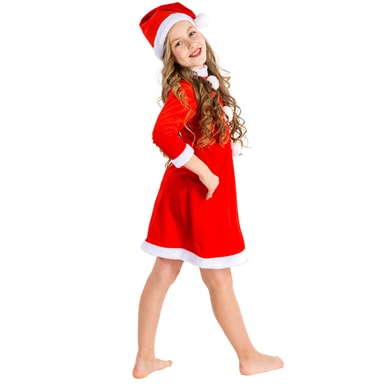 Makeraddräkt tomtemor består av en vacker, kort klänning, framtill med påsydda fluffiga snöbollar, baktill med ett litet kardborreband i nacken för att lätt kunna ta på dräkten. Medföljer: en söt tomteluva. Hela dräkten har ett tidlöst julinspirerat utseende och är härligt skön och mjuk. Material: 100 % polyester.