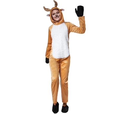 Som rasande ren är du alltid redo för en äventyrlig julsaga! Tack vare overallen och med hjälp av den långa dragkedjan kan du förvandlas till tomtens fluffiga hjälpreda på nolltid. I denna dräkt kan du njuta av heta fester även när det är riktigt kallt. Men tänk på det här: En rasande ren som festar ordentligt bör helst lämna släden hemma.