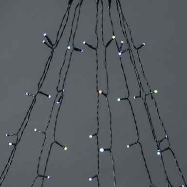 Den svarta färgen på kabeln passar bra på träd och smälter in i bakgrunden eftersom den inte stör optiken. De 10 slingorna på 3 meter har 180 LED-lampor som sitter monterade på 11 centimeters avstånd från varandra. Eftersom nätsladden är 3 meter lång behöver du inte oroa dig för den inte ska nå fram. Det är mycket praktiskt om uttaget finns lite längre bort. Trädet kan användas utomhus.