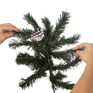 Den täta barrdräkten i djupgrönt ger tillsammans med kottarna ett mycket realistiskt utseende. De böjbara grenarna kan formas efter önskemål och de många hundra spetsarna är vackert snötäckta för det där lilla extra. Resultatet är en mycket naturtrogen plastgran som utstrålar känslan av en julig vinterskog. Den robusta, pulverlackerade metallfoten med fällmekanism och halkskyddande tassar ger alltid en stabil bas – även med riklig dekoration.