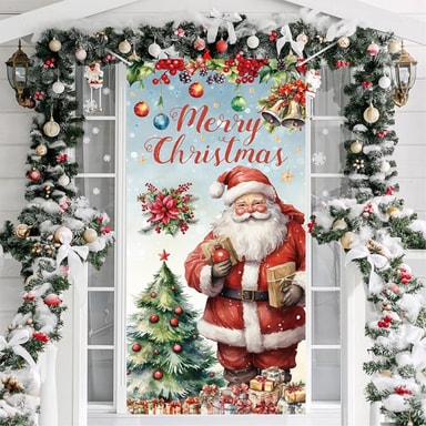100D polyestertyg juldörrskydd God jul bakgrundsbanner juldekoration