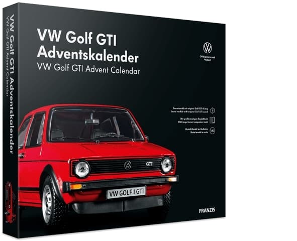 Adventskalender med konstruktionsuppsättning av en Volkswagen Golf GTI i skala 1/43. 24 luckor som gör väntan på julafton snabbare än en kan man säga ordet nostalgi!