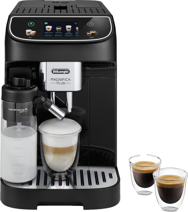 1450W De'Longhi Magnifica Plus espressomaskin ECAM320.60 ger dig kaféupplevelsen till ditt hem. Den har en vattenbehållare på 1,9 liter, LatteCrema Hot-teknik, samt en 3,5-tums pekskärm och val för 15 anpassningsbara drycker.Läs mer om produkten