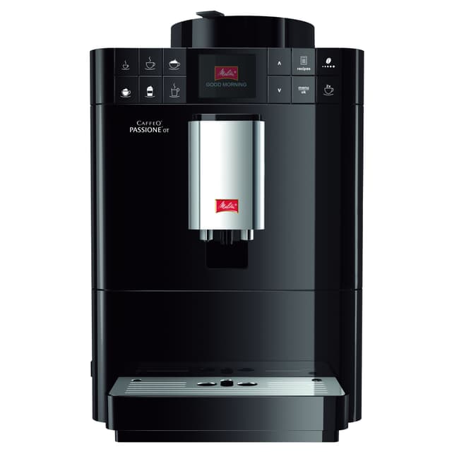 Sin kubiska form och eleganta, svarta design gör att Melitta Caffeo Passione OT kaffemaskin MEL21548 passar in var som helst.