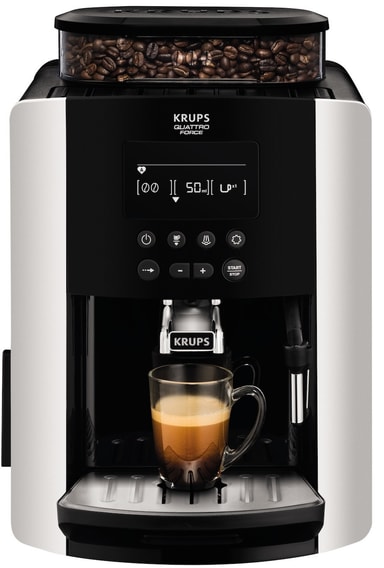 Krups Arabica Silver Quattro Force automatiska espressomaskin tar dig med på en smakresa till Italien, där espresson har sitt ursprung. Att göra kaffe hemma är lika enkelt som att beställa det på ett kafé.Läs mer om produkten