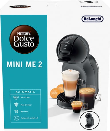 Dolce Gusto Mini Me 2 kapselmaskinen EDG335.B erbjuder över 45 varma och kalla drycker. Den har en 0,8 l vattentank och stängs automatiskt av efter 5 minuter. Den har även justerbar volym för personliga drycker.Läs mer om produkten