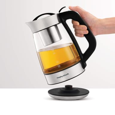 Morphy richards tekokare. 5 temperaturinställningar för olika te. Avtagbart lock och te-behållare för enkel rengöring. Varmhållningsfunktion. 2,2 kw element. Fungerar också som vattenkokare. Kontroller i handtagetmorphy richards nya tekokare för teälskaren, har en kanna som rymmer 1.2 l. Fyll på önskad mängd vatten, och ditt favorit-te i den övre behållaren, och när vattnet når rätt temperatur levererar pumpen varmt vatten till bryggkorgan och upprepas i ca 2,5 minuter. När detta är klart kommer teet att stå i 30 sekunder för att slutföra bryggprocessen, varefter varmhållningsfunktionen håller ditt te vid optimal temperatur i 30 minuter. vattentemperaturen spelar en viktig roll för att utvinna full smak och arom. Medan vita och gröna teer bryggs vid lägre temperaturer upp till 85° c, beredes svart te med varmt vatten med 95° c. Med 6 variabla testyrkor: grönt te, svart te, ört te, oolong te, vitt te och 100° c kan du tillaga nybryggda läckra teer precis som du vill ha dem.