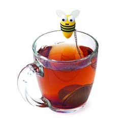 En tekula med ett bi som sitter på kanten av koppen eller glaset.Läs mer om produkten