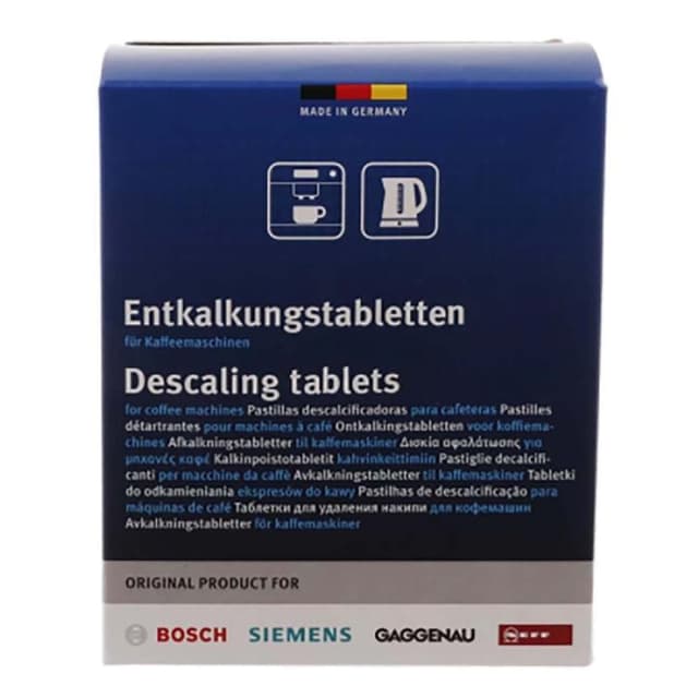 • Innehåll: 6 x 18 g - räcker till 3-6 behandlingar beroende på användning • Avlägsnar kalkavlagringar kraftfullt, snabbt och tillförlitligt • Kan öka maskinens livslängd och prestanda • Använd alltid två tabletter för avkalkning av kaffemaskiner
