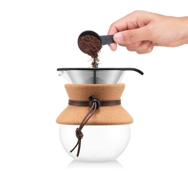 BODUMin Pour Over -kahvinkeitin on avain täyteläisemmän, vahvemman kahvin valmistamiseen kotoasi käsin. Sen muotoiltu estetiikka on tyylikäs lisäys mihin tahansa keittiöön, mutta sen tuottama täyteläinen, pehmeän makuinen kahvi vahvalla tuoksulla voittaa sydämesi.