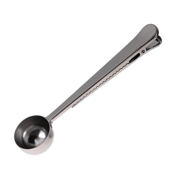 Kaffeskopa och påsklämma i ett! Enkelt men genialt kaffemått i form av en rejäl klämma som handtag. Måtta upp kaffet med skopan och håll kaffet sedan fräscht i påsen med klämman. Inget mer letande efter kaffemåttet på stressiga morgnar! Kaffeskopa för 40 g kaffe, 20ml klämma i handtaget att försluta påsen med. Material: rostfritt stål. Mått: 16 x 3,5 cm. Rengöring: handdisk.