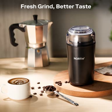 North kaffekvarn 205108 har en kraftfull 200-watts motor, manuell malningskontroll och en lättrengjord kopp i rostfritt stål. Kompakt, säker och perfekt för snabb och precis malning av kaffebönor.Läs mer om produkten