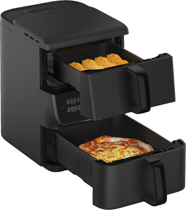 Emerio air fryer AF-133324 är en 2500W air fryer med 3,5L och 6,5L korgar, dubbla värmezoner och synkfunktion. Apparaten har även justerbar temperatur, snabbuppvärmning och diskmaskinssäkra delar med non-stick-beläggning för bekväm matlagning.Läs mer om produkten